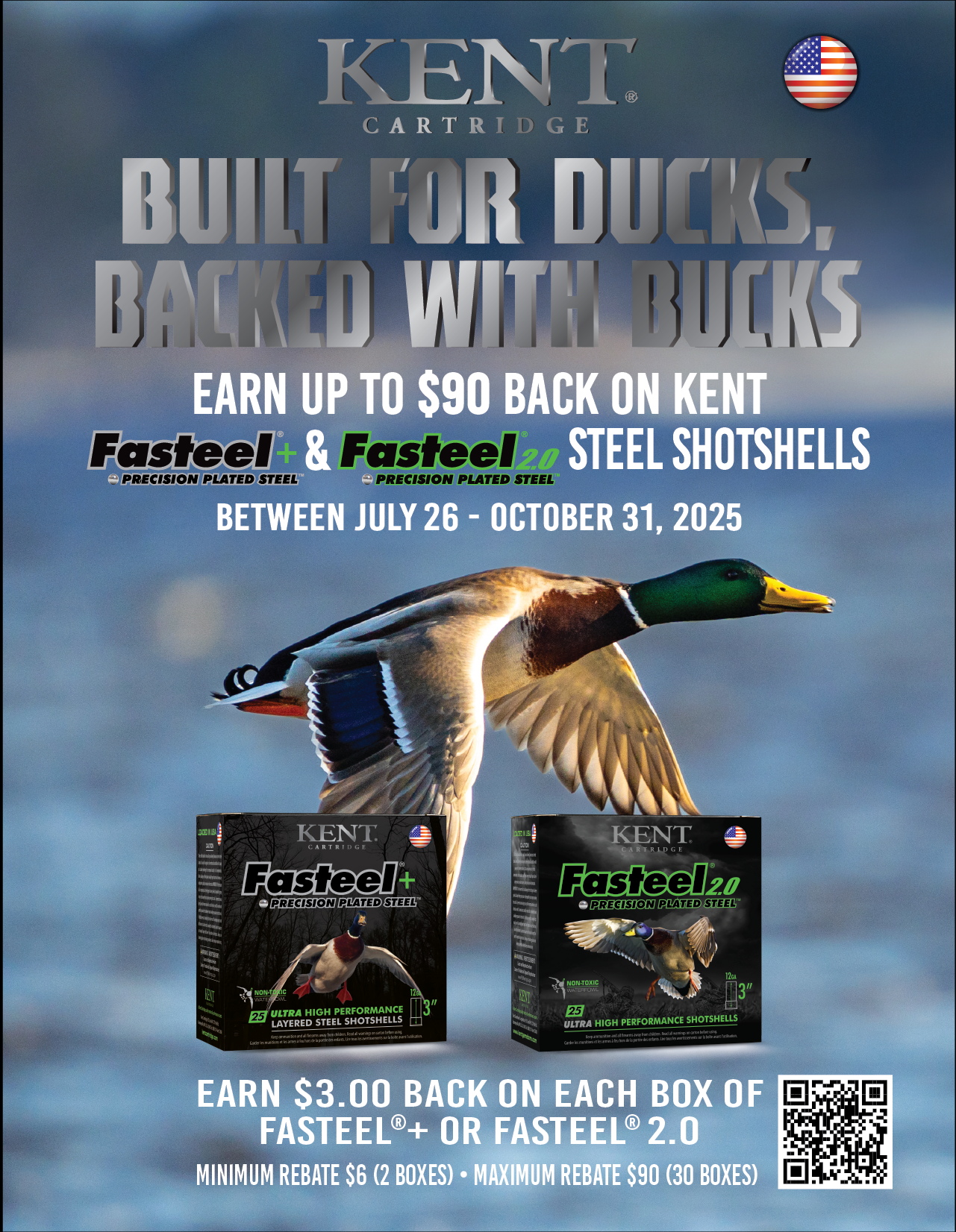Earn up to $90 back on Kent Fasteel steel shotshells.
